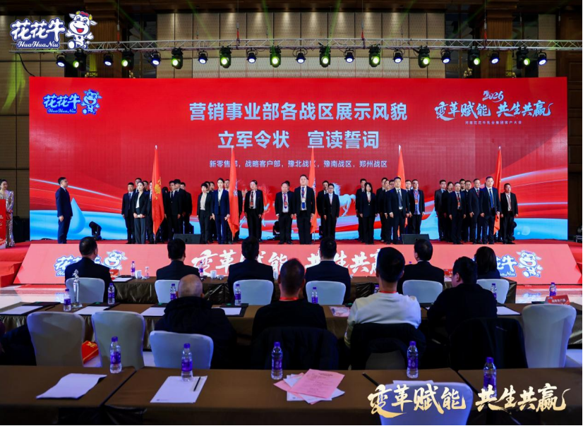 歲末寒冬,暖意融融,河南花花牛乳業(yè)集團2026年度客戶大會盛大召開,集團領(lǐng)導(dǎo)班子,核心經(jīng)銷商、配送商伙伴,外部行業(yè)專家,營銷事業(yè)部戰(zhàn)區(qū)負責(zé)人、業(yè)務(wù)代表及相關(guān)部門人員等430余人齊聚一堂,共商發(fā)展大計。會議系統(tǒng)回顧了2025年度河南花花牛乳業(yè)集團的經(jīng)營發(fā)展成果,對2026年的發(fā)展戰(zhàn)略進行了前瞻規(guī)劃與周密部署,為集團邁向更高質(zhì)量發(fā)展奠定了堅實根基。會議還重磅發(fā)布輕覺五紅酸奶、“5+5”輕食瓶酸奶等戰(zhàn)略新品,以及利樂鉆草莓牛奶、“嗨!檸好”、煥新版“暢極多”等多種年度新品,以創(chuàng)新產(chǎn)品矩陣開啟2026年度發(fā)展新篇章。